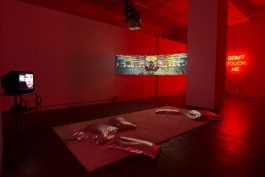 The centrepiece of the exhibition is the video work Protest and Desire(2019), which portrays the 49-year-old Ugandan-born Lilian, who lives in Germany. In a series of interviews, she re-ports of her personal experiences as a HIV-positive, Black woman in Germany while subtly pointing towards the inherent prejudices that women of colour experience within and outside of their own communities. She provides insight into the way she deals with personal ghosts of the past and present, and the struggle for societal visibility and acceptance. This is expanded through dream-like and associative sequences that move between lightness and darkness, weaving together notions of innocence and danger. Protest and Desire demonstrates the extent to which shame, stigma and isolation can be transformed into strength and self-empowerment, expanding the complex and multi-layered narratives around dealing with HIV and AIDS acti-vism, in which women, in particular women of colour, have historically been silenced and –now as then – are rendered invisible.Through this, the video work exposes a plethora of struc-tural problems, in particular in relation to Germany's treatment of migrants, biological and health politics when dealing with HIV and PrEP revealing Eurocentric patterns of thinking. The video-collages Cool Girl (2019) and Bitches and Witches (2019) address themes of inherent societal racism and misogyny, as well as their interconnections. Pop cultural film se-quences from the late 1980s, 1990s and the early 2000s are rearranged and augmented. They reflect societal stereotypes and social modes of behaviour. Accumulated in this manner, they point towards the permanent medial reproduction of traditional and limited understandings of femininity. At the same time, the video-collages provide a self-empowering new interpretation of all of those images that – often in an unreflected way – accompany us.